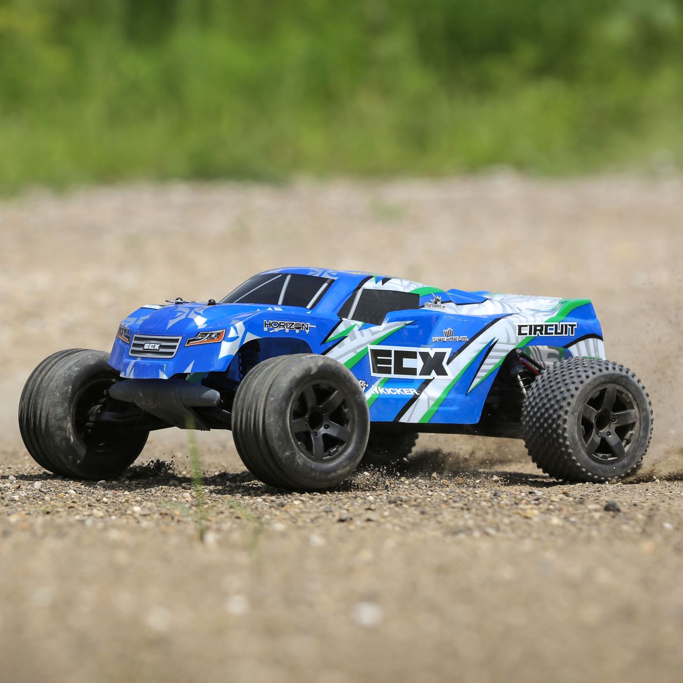 Drive as recklessly as you want without consequences with the ECX® Circuit™ Stadium Truck. This merciless hellion doesn’t back down even in the roughest environments due to waterproof electronics, nylon composite chassis, and well-known ECX durability. It leads the charge with savage features such as Spektrum™ STX2™ 2Ch 2.4GHz FHSS Radio System, Dynamite® 15T brushed motor, and Dynamite® waterproof and LiPo compatible Tazer™ 15T ESC. Pick your power, charge it up and take on all comers.